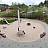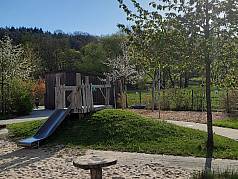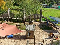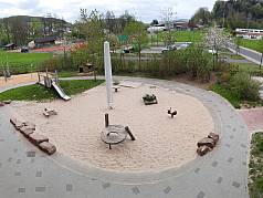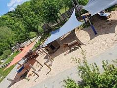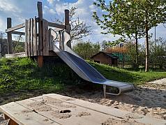 • große Sandfläche mit Wasserpumpe und 2 "Backtischen"